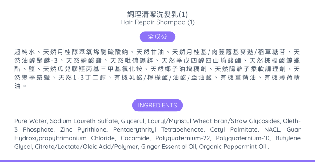 添加有機薑精油、有機薄荷精油、荷荷芭脂油、小麥胺基酸,能軟化硬角質,滋養頭皮促進毛髮強健,溫和清潔頭皮多餘油脂與髒汙。