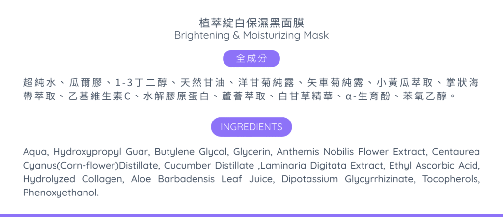 產品名稱:植萃綻白保濕黑面膜
