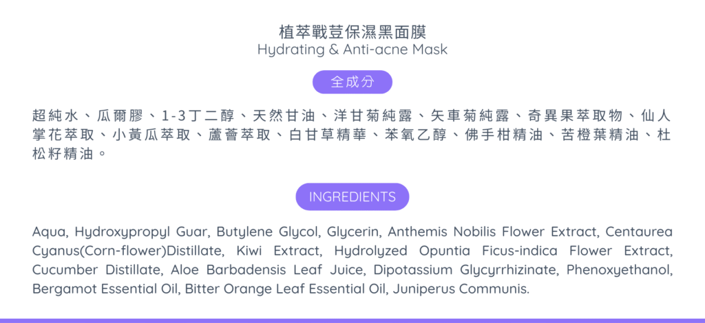 用 途:臉部保養,肌膚補水、調理痘痘、細緻毛孔。