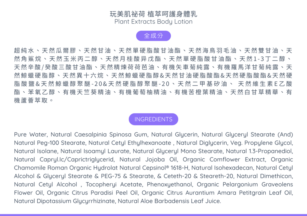 產品名稱:玩美肌祕荷 植萃呵護身體乳