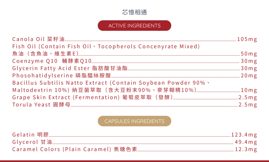每粒含有TFDA核准最高劑量30毫克的輔酶Q10,有助於調節生理機能、促進新陳代謝。此外,配方中特別添加磷脂醯絲氨酸、魚油及納豆萃取物,有助於調整體質、增強體力及維持健康。更結合圓酵母精華,幫助養顏美容,展現青春美麗!