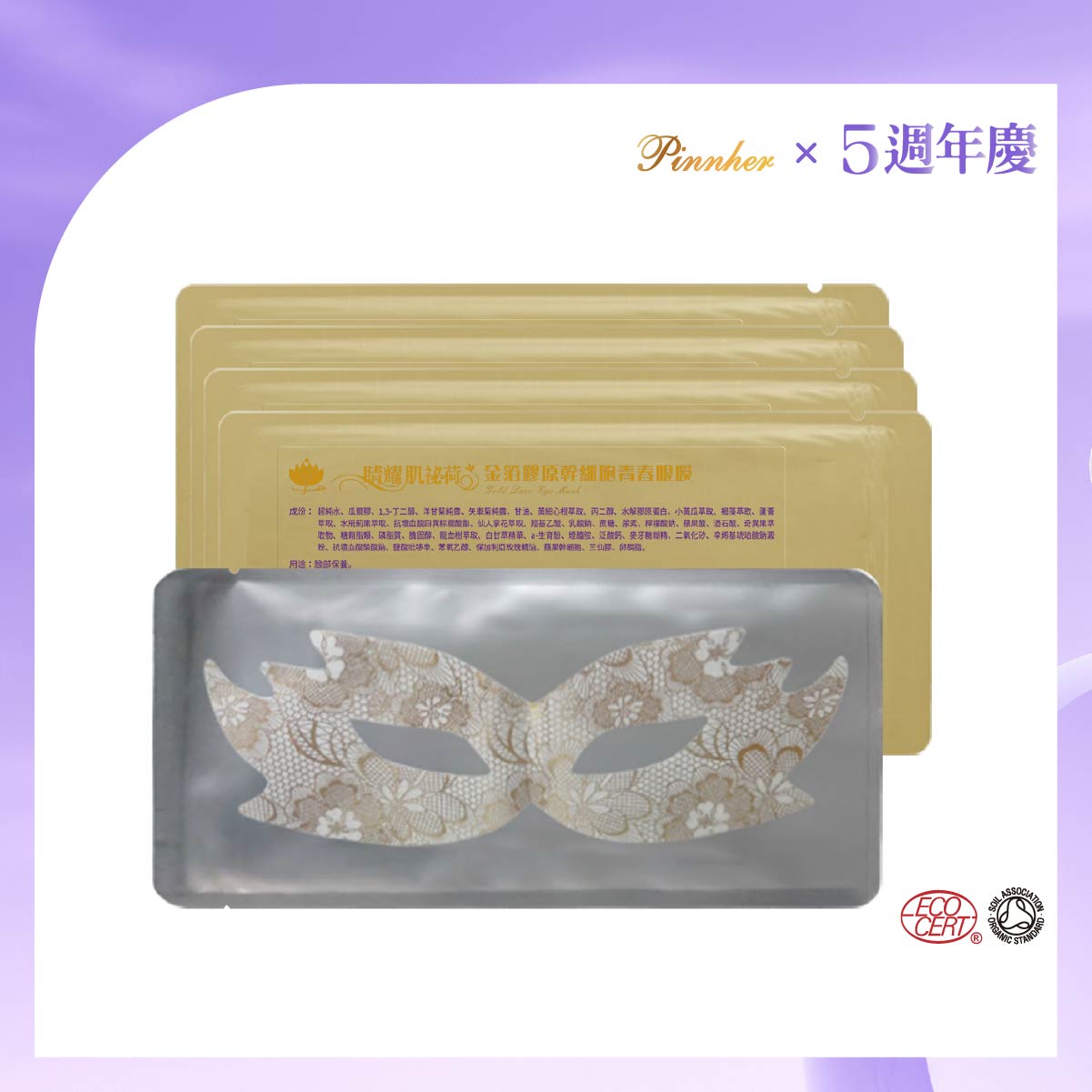 🎉歡慶5週年慶🎉睛耀肌祕荷 金箔蕾絲眼膜×30片入